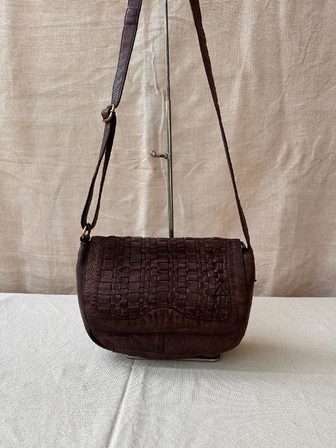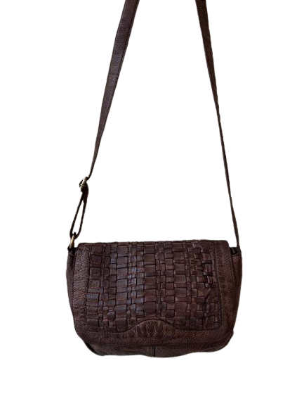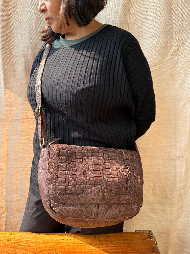 Ladies Hand stained cross body Leather bag with woven flap