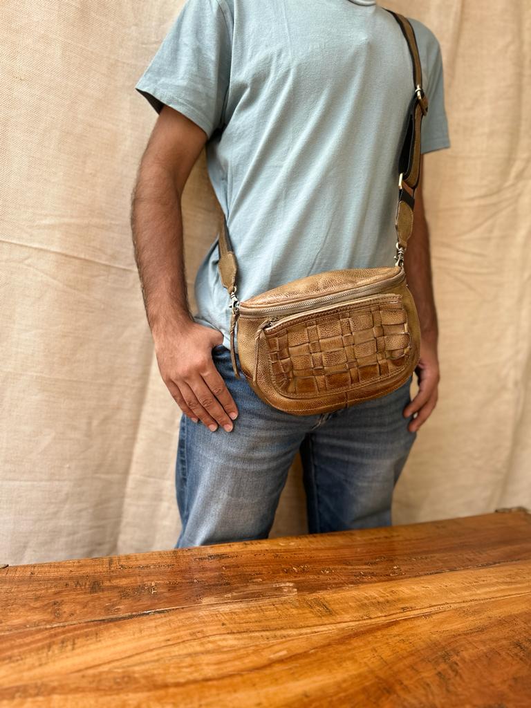 Hand-Stained Vintage Appeal: The Unisex cross body Leather Handbag features a unique hand-stained two-tone leather exterior, giving it a vintage-inspired look that is both timeless and captivating. Each bag has its own distinct character, showcasing the artistry and craftsmanship that goes into its creation.