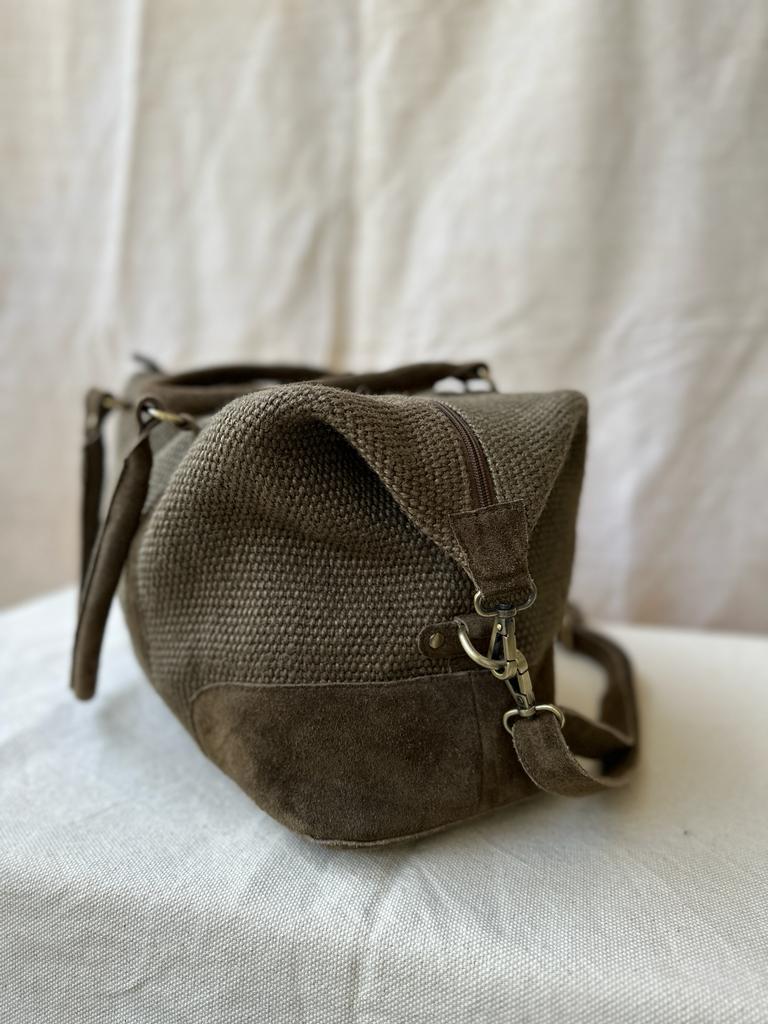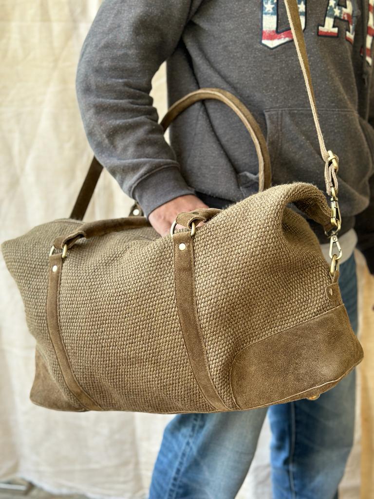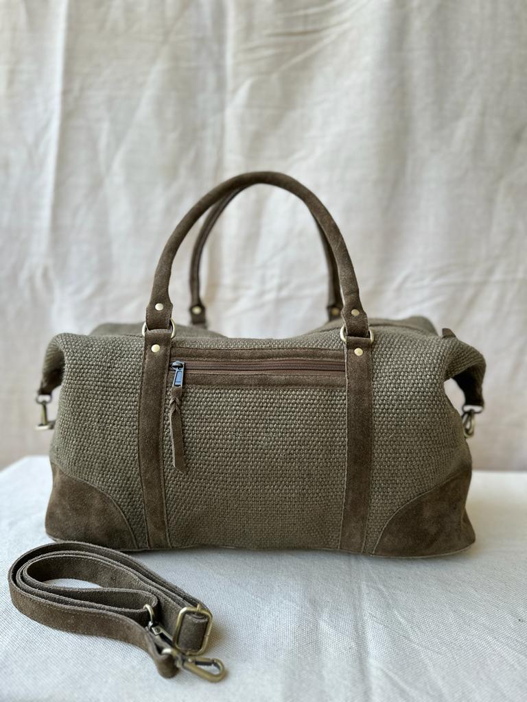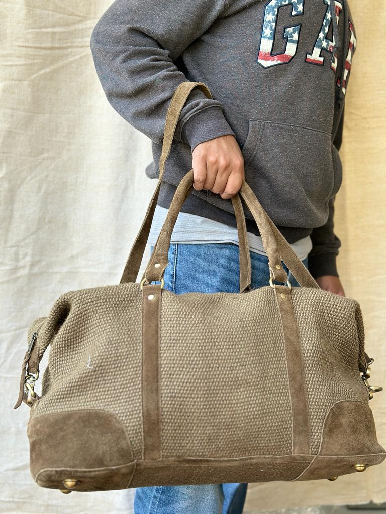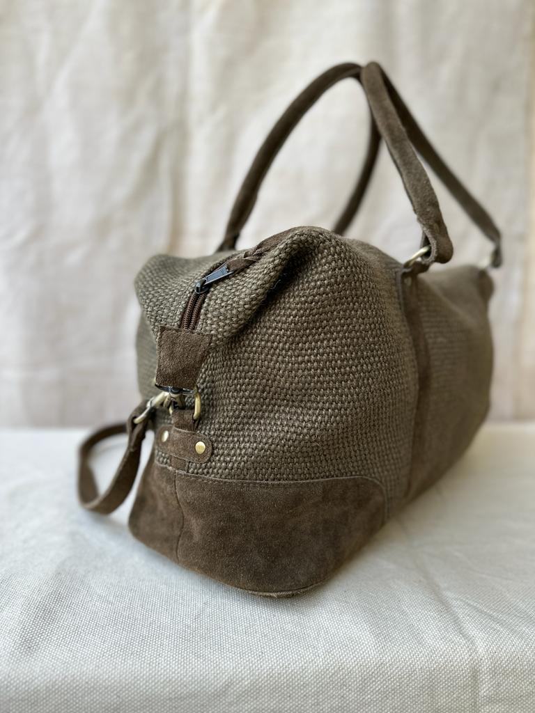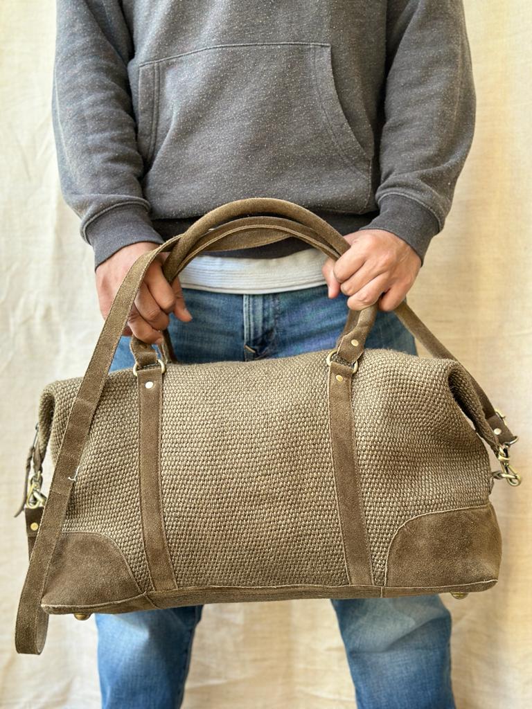 Introducing our Jute Duffel with Genuine Suede Leather Trims—a harmonious blend of eco-friendliness and timeless style for the conscious traveler and fashion enthusiast.